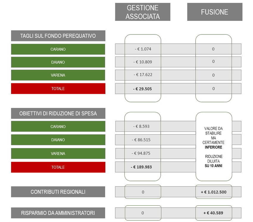 Confronto tra le principali differenze economiche tra gestioni associate obbligatorie e fusione